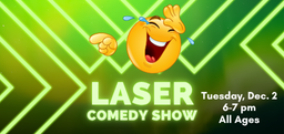 The Laser Comedy Show is an improvised story based on targeted suggestions gathered from the audience by drawing the characters and scenery live with lasers on a special glow in the dark screen and voice acting the characters and sound effects.